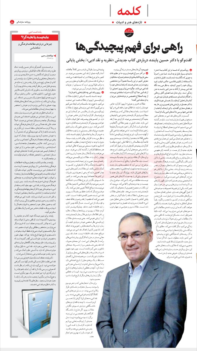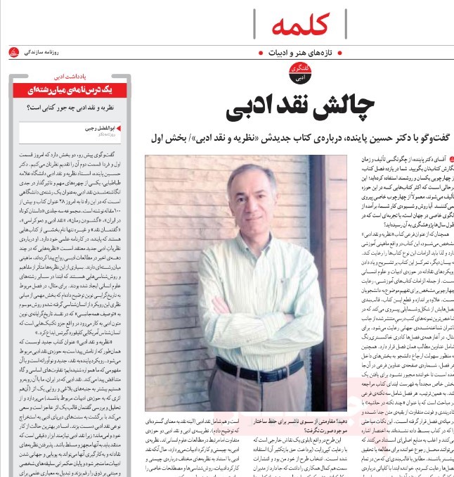 آنچه در پی میآید، متن مصاحبهی حسین پاینده با روزنامهی «سازندگی» دربارهی کتاب اخیر ایشان (نظریه و نقد ادبی: درسنامهای میانرشتهای) است که انتشارات سمت آن را در پاییر ۹۷ منتشر کرد. این مصاحبه در دو قسمت در روزنامهی سازندگی منتشر شد. در متن زیر ابتدا یادداشت ابوالفضل رجبی، روزنامهنگار، را میخوانید که این مصاحبه را با پاینده انجام داده است و سپس بخش اول مصاحبه را که در شمارهی روز دوشنبه ۳۱ تیرماه ۹۸ انتشار یافت.